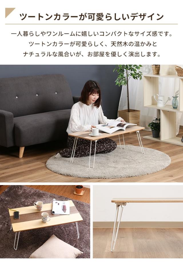 | ツートンカラーが可愛らしい折りたたみローテーブル。 天然木の温かみとナチュラルな風合いがお部屋を優しく演出します。 一人暮らしやワンルームに嬉しいコンパクトなサイズ感です。 折りたたみができるので、使わない時は狭い場所にも収納することができます。 |