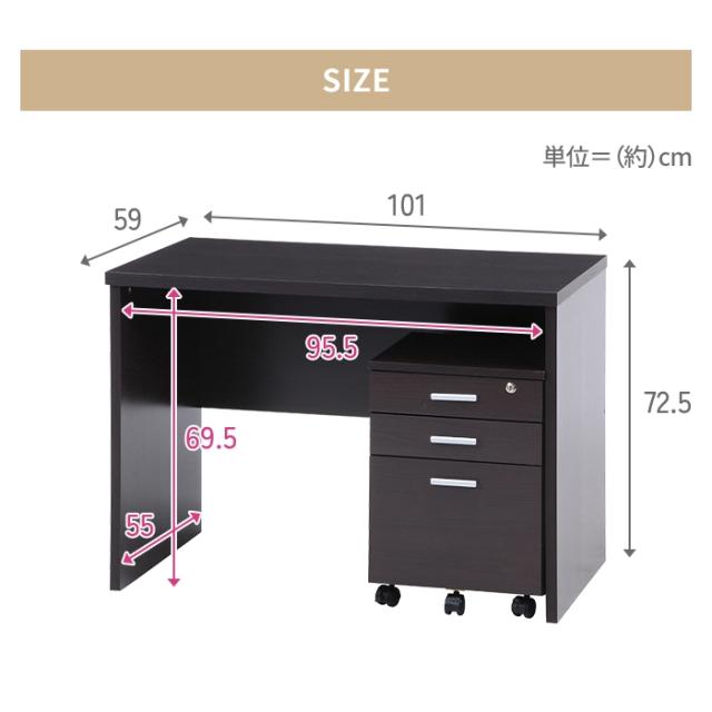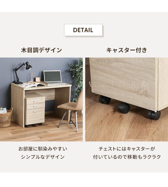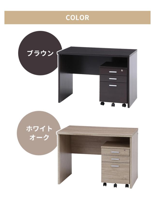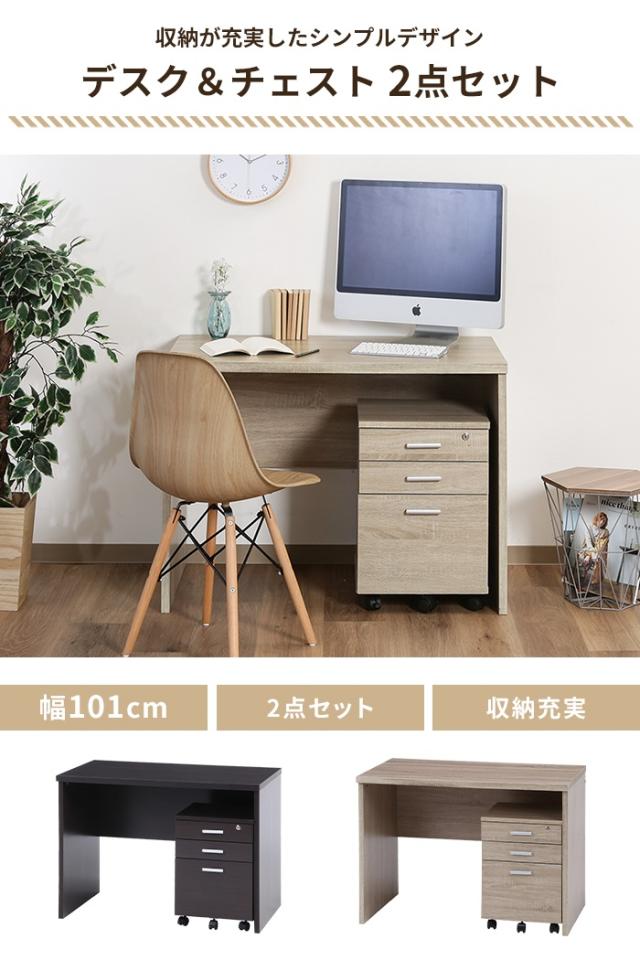 デスク 机 勉強机 2点セット 幅101 ワゴン シンプルデスク パソコンデスク コンパクトデスク 収納付き 省スペース 便利