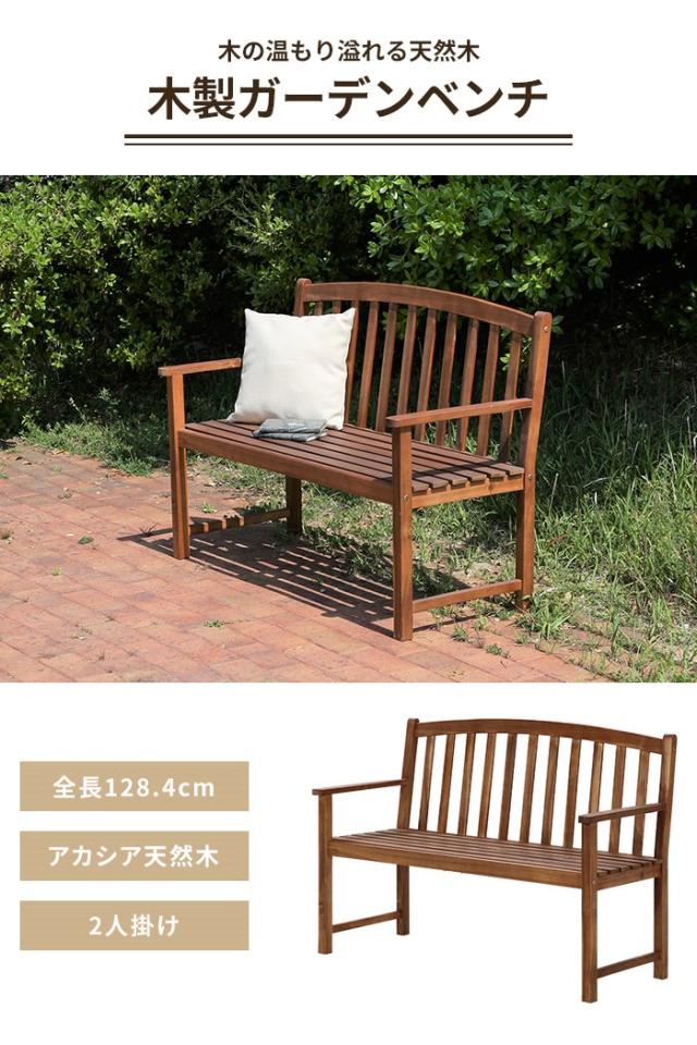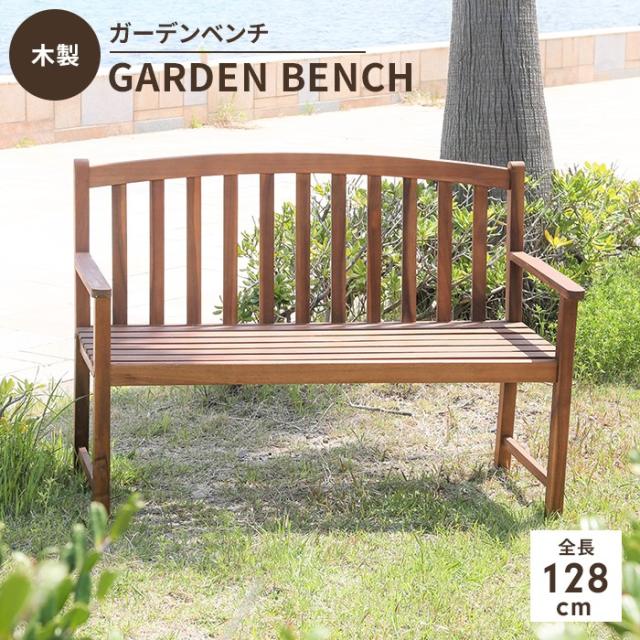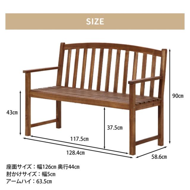 【値下げ】木製 ガーデンベンチ 幅128 屋外ベンチ ベンチチェア 2人掛け 天然木 アカシア材 肘付き 背もたれ付き 屋外 庭 ベランダ