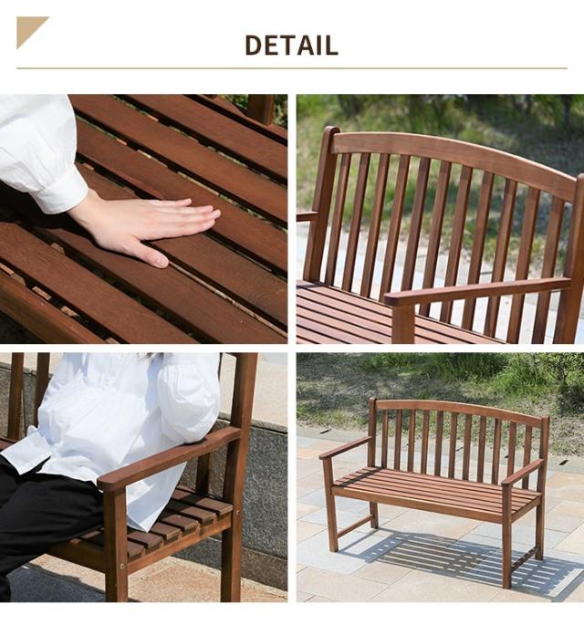 | 天然木の美しさと木のぬくもりを味わえる、座り心地の良いベンチ。 耐久性のある天然木のアカシア材を使用し、オイルステイン加工を施してあるので水にも丈夫です。 テラスやお庭など憩いのスペースでお使いください。 |