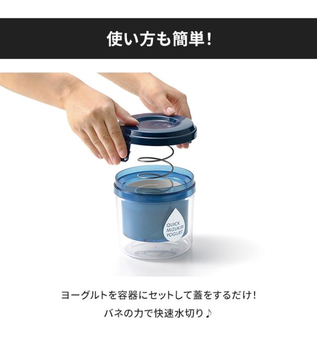 キーワード:クイック水切りヨーグルト ヨーグルトメーカー 日本製 ヨーグルト 水切り 時短 朝食 おやつ お菓子 製菓 デザート 手作り セットするだけ 簡単 下ごしらえ 調理 料理 調理器具 キッチン用品 キッチンツール キッチングッズ バネ 水を切る ホエイ レシピ 自家製ヨーグルト 濃厚 クリームチーズ 硬さ 調節 チーズ ケーキ 早い 速い スピーディー 快速 製菓道具 調理小物 便利グッズ アイデア 便利 グッズ 商品 ペーパーフィルター不要 ブルー 青 生活 暮らし 雑貨 水切りヨーグルト ヨーグルト容器 容器 サラダ カプレーゼ 家庭用品 日用雑貨 節約 台所用品