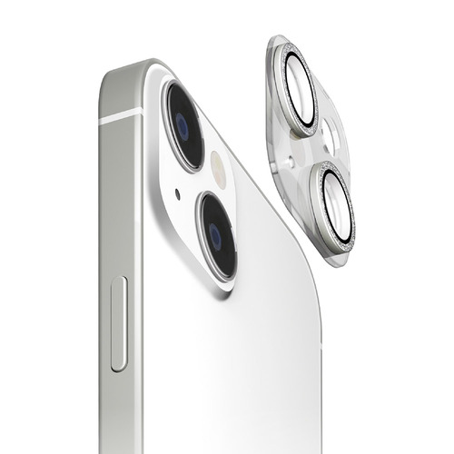 カメラレンズ周りを煌びやかに魅せるiPhone15 iPhone15 Plusのカメラフルプロテクター ラメシルバーです。