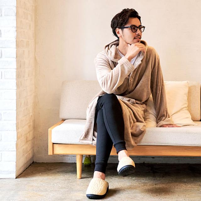 ダウンのように軽くて保温性抜群のこちらは、内側が起毛加工されたボア生地で優しい履き心地が魅力です。