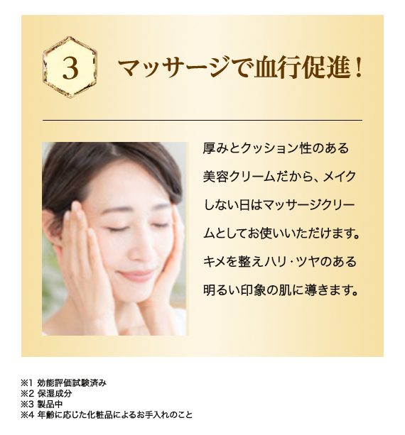 2.中指と薬指の腹で、内側から外側へ円を描くようにゆっくりなじませます。