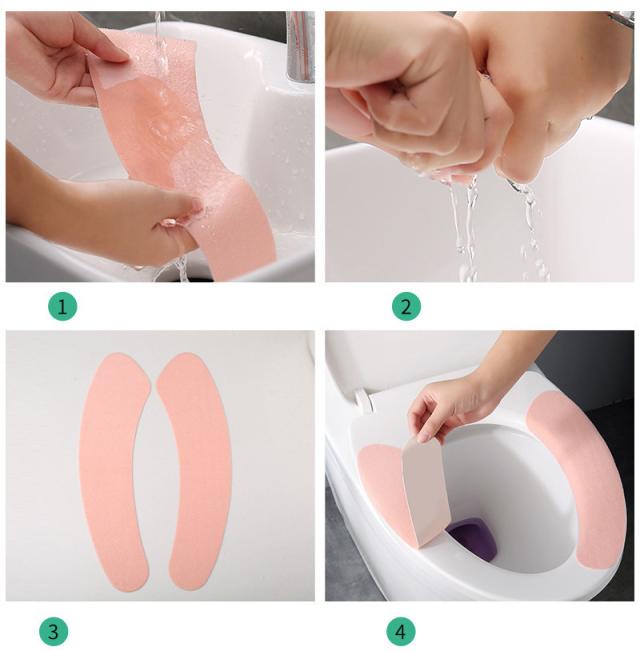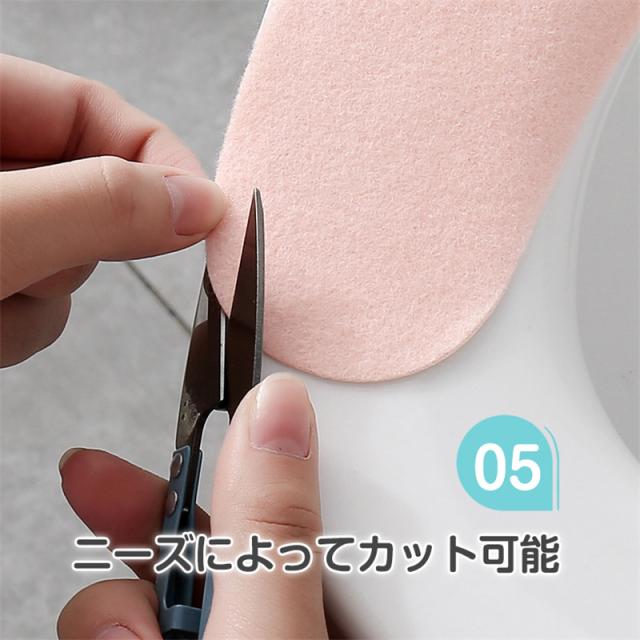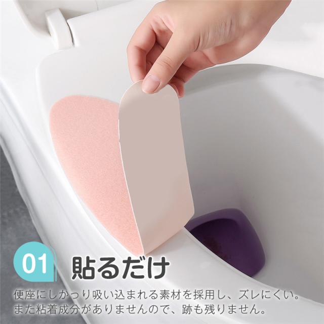 貼るだけ:便座にしかっり吸い込まれる素材を採用し、ズレにくい。また粘着成分がありませんので、跡も残りません。