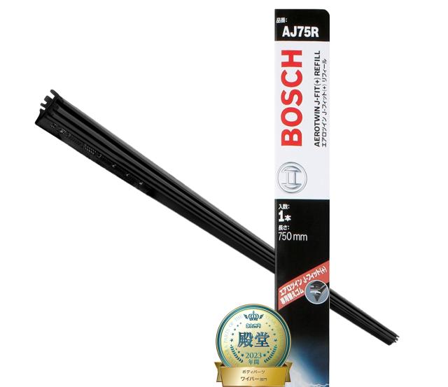 世界有数の自動車部品サプライヤー信頼のボッシュ製。<br>特徴フラットワイパーブレードの元祖であるボッシュが開発したワイパーブレード。<br>トレンド現在の欧州車では新車装着の90%以上がフラットワイパーを採用し、国産車でも新車装着の50%以上がフラットワイパーです。<br>長さ750mm・適合アーム替えゴム・国産車適合カバー率90%以上・交換目安1年。<br>適合詳細はホームページにてご確認ください。<br>定期的にワイパーゴムを交換する事で、本製品の持つ4つの特徴(拭き取り性能/ロングライフ/静粛性/オールシーズン)を維持します。<br>◆商品名:BOSCH(ボッシュ) ワイパー替えゴム エアロツインJ-フィット(+) リフィール 750mm AJ75R<br>大人気のBOSCH(ボッシュ)のワイパー。
