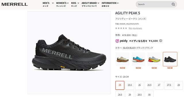 メレル MERRELL メンズ スニーカー アジリティー ピーク 5 アウトドアシューズ トレイルランニングシューズ AGILITY PEAK 5