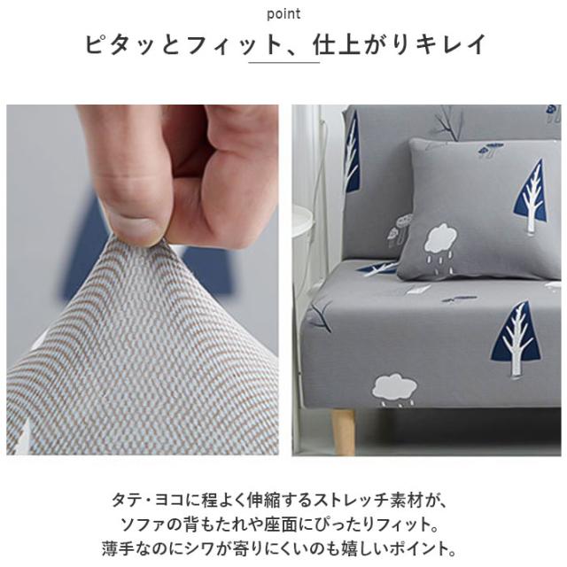| 商品説明 | ・お使いのソファーにすっぽりと被せるだけ!お気に入りの柄で模様替えが楽しめる「2人掛け用ソファーカバー」が新登場。 【ピタッとフィット、仕上がりキレイ】 ・タテ・ヨコに程よく伸縮するストレッチ素材が、ソファの背もたれや座面にぴったりフィット。薄手なのにシワが寄りにくいのも嬉しいポイント。 【ぐーんと伸びて、パっと着せ替え】 ・ポリウレタン配合の生地がぐーんと伸びて、ソファ全体をすっぽりカバーするので、汚れや傷が目立つソファも気軽に着せ替えが可能♪ 【誰でも簡単セッティング】 ・伸縮ゴムの入ったカバー裾をソファの下部までぴったりと被せ、カバー裏側の固定紐をソファー底面で結び付けるだけで装着も簡単! 【オールシーズン快適な素材感】 ・落ち着いたカラーの生地に、花柄やツリーなど、バラエティに富んだモチーフを散りばめたポップなデザイン。サラッと滑らかな肌触りで季節を問わずにオールシーズンコーディネート可能。 【ご家庭でお洗濯OK!】 ・手軽にお手入れができる簡単ウォッシャブル仕様。いつでも清潔に使えて、小さなお子様やペットがいるご家庭でも安心。(※洗濯ネットをご使用ください。) 【選べるカラーで、気持ち華やぐ】 ・センスの良さがさりげなく際立つ洗練されたカラーバリエーション。季節ごとにお気に入りの柄のカバーで模様替えをすれば、お部屋も気持ちもリフレッシュ! |