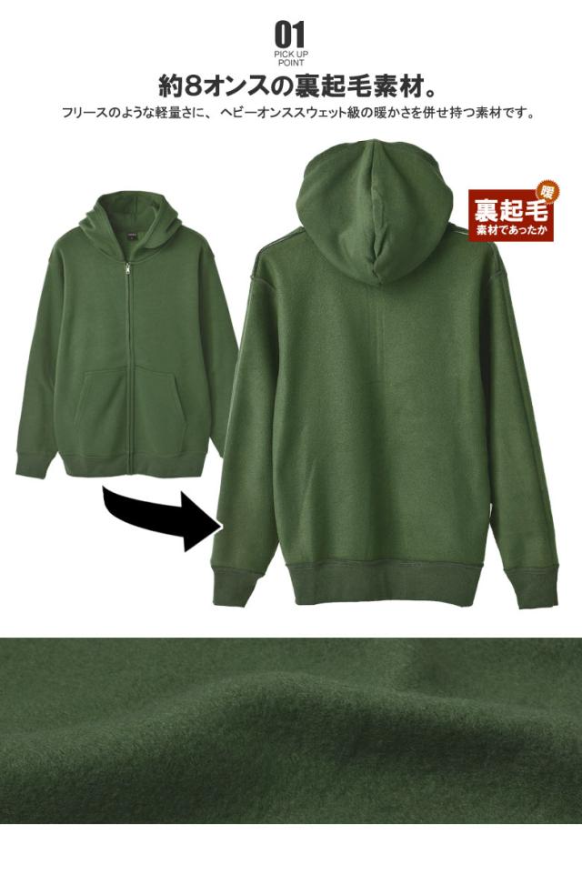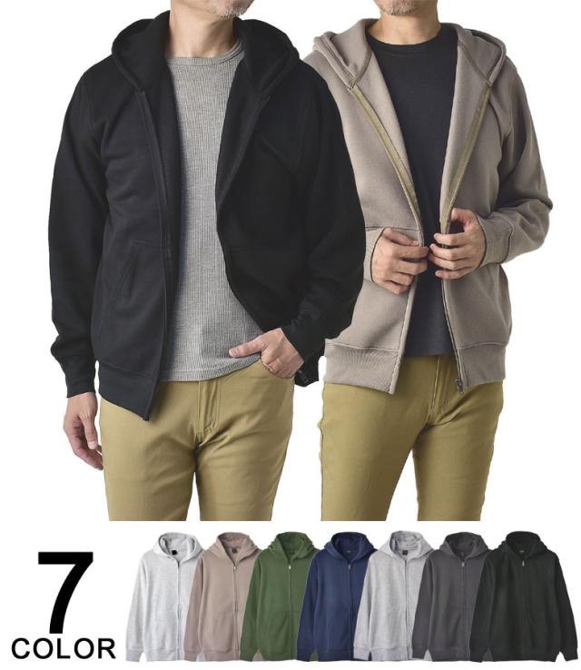 裏起毛 フルジップパーカー メンズ 無地 スウェットパーカー 厚手 軽量 アウター【A2U】【パケ1】【A】