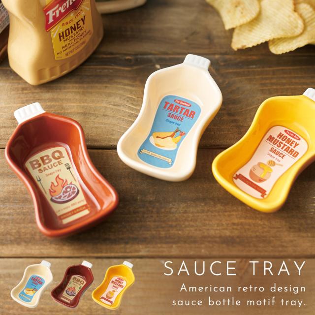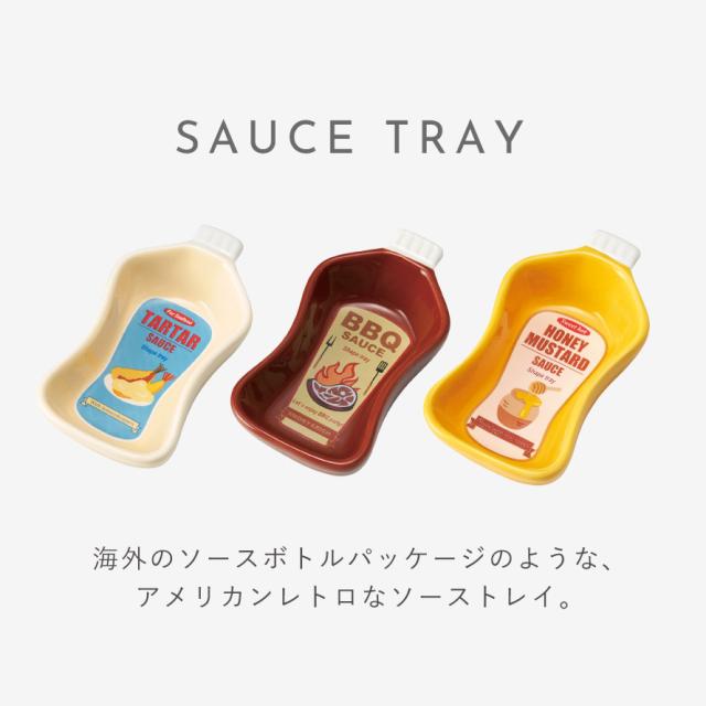 海外のソースボトルパッケージのような、アメリカンレトロなソーストレイ。インスタ映えするユニークなデザインです。お菓子やソースなどを入れて、ホームパーティーやアウトドアで使ったり、お部屋で小物入れなどのインテリアとしても。