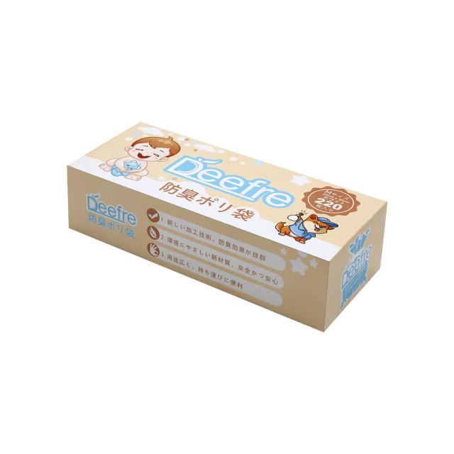 【驚異の脱臭効果】収容物からの臭気の透過を抑制するバリア層を有し、数日放置されても嫌なニオイが漏れません。子供のオムツ処理やペットの汚物始末など、様々なシーンで大活躍。<br>【高品質素材】共押出し法により0.02mm厚の7層フィルムを作製し、柔らかさも強度もあります。香料不使用で敏感な嗅覚がある赤ちゃんにも優しい。<br>【使い方は簡単】箱を開けて、片手で一つ一つ引き出しやすいです。おむつを入れたらなるべく空気を抜いて口をしっかり結んで下さい。色付きタイプで中身も見えにくい。<br>【十分な容量】220枚入り。枚数が多かったので気兼ねなく使えます。毎日のおむつ交換を快適に!<br>【サイズ】M:縦40cm*横25cm。Mサイズおむつを2個くらい収納できます。<br>◆商品名:Deefre おむつが臭わない袋 220枚入 Mサイズ 赤ちゃん用 おむつ処理袋 十分な容量防臭袋 生ゴミが臭わない袋 厚くて丈夫 ゴミ袋 臭わない<br>