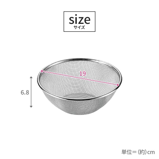 【値下げ】ステンレスメッシュザル 19cm ザル 袋入り バルク 丸型 水切り 丈夫 頑丈 キッチン用品 キッチングッズ ボウル 調理器具