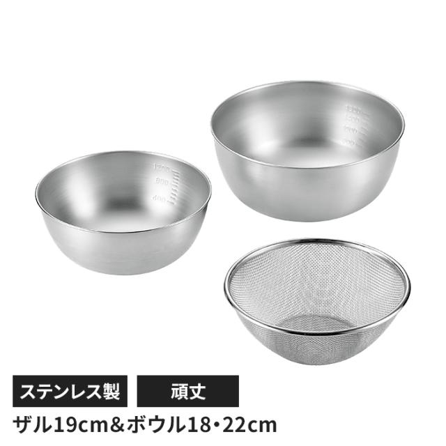 | ストロングメッシュザル19cm×1 ボウル18cm×1 ボウル21cm×1 |
