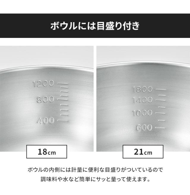 | [ボウル18cm]約1.6L [ボウル21cm]約2.8L |
