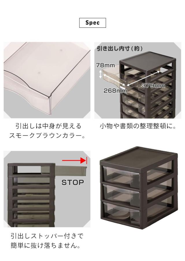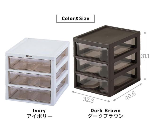 中身がみえるクリアタイプの引出しはペンや付箋紙などの小物類、書類などの整理に最適。
