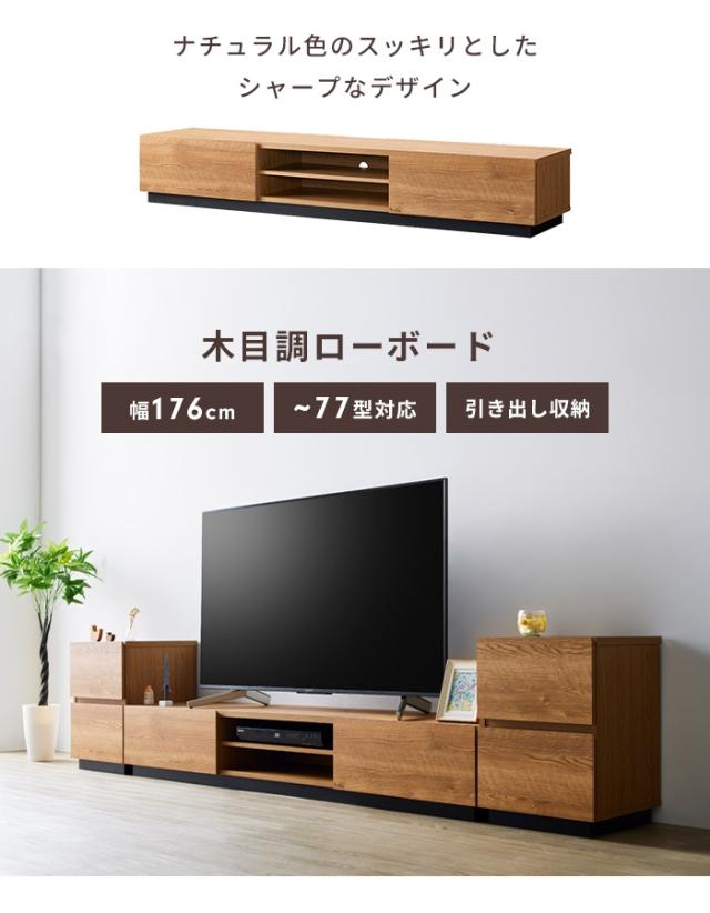 【値下げ】ローボード 幅176 テレビ台 テレビボード TV台 〜77V 大容量 収納 棚付き 木目調 ナチュラル おしゃれ シンプル 上品