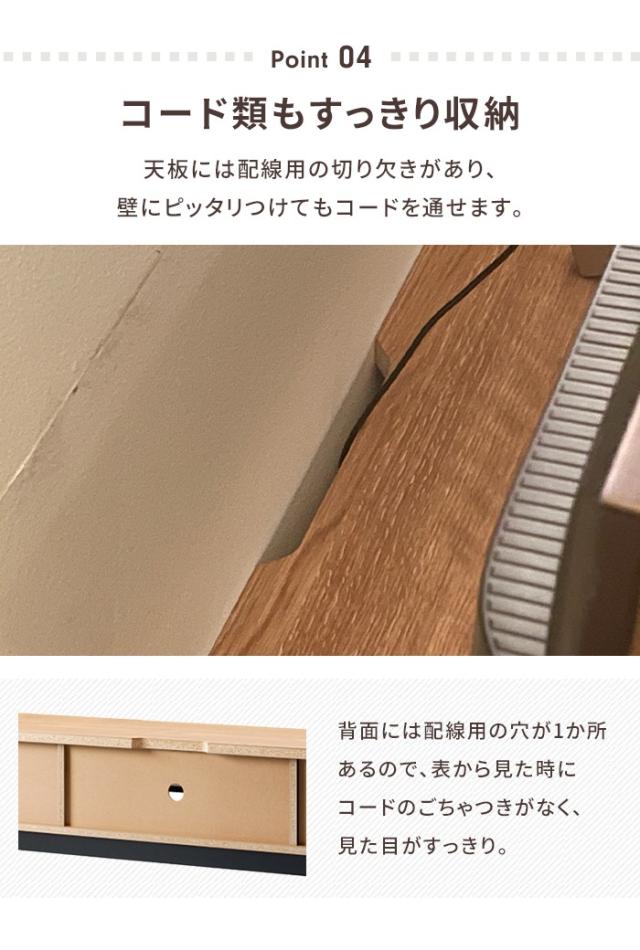 天板には配線用の切り欠きがあり、壁にぴったりつけてもコードを通せます。