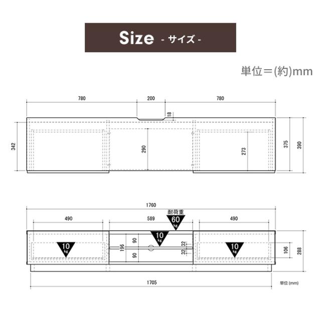 | 約幅176×奥行39×高さ28.8cm |