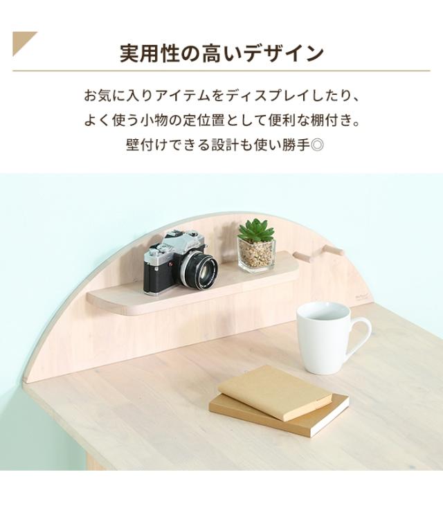 テーブルは半楕円の形をしており、端の方を壁にくっつけて配置できます。