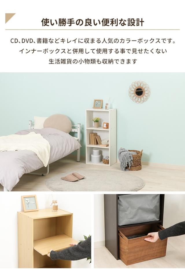 余計の装飾のないシンプルデザインで使い勝手の良いのカラーボックス。