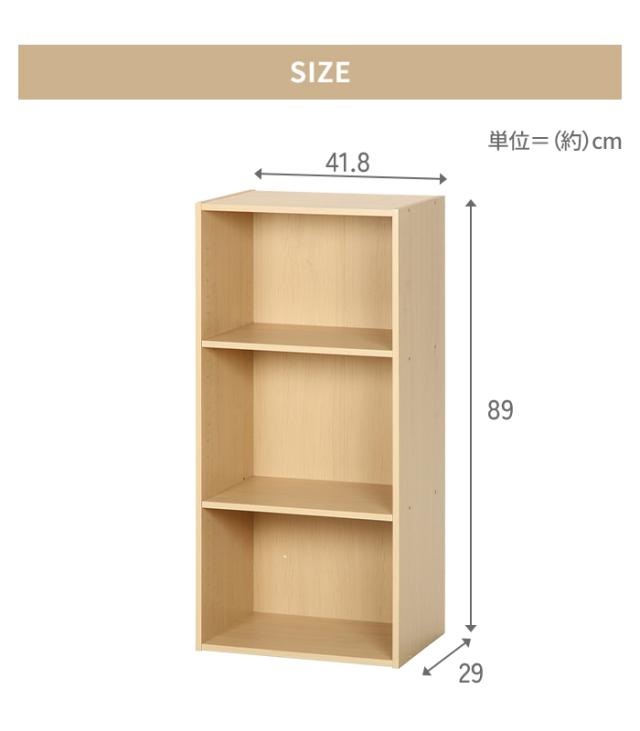 キーワード:収納ボックス 収納棚 可動棚 カラーボックス 3段 幅42 本棚 木目調 収納カラーボックス シンプル ナチュラル ディスプレイラック 棚 リビング 寝室 子供部屋 本 CD