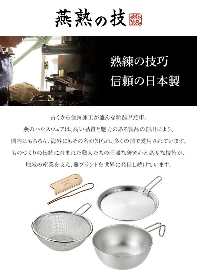 キーワード:キャンプ用品 シェラカップ・ボウルセット 15cm 手付きザル付 蓋トレー付 レザーカバー付 ステンレス製 直火 コンパクト 軽量 スタッキング アウトドア 便利 調理器具 キャンプ 水切り BBQ バーベキュー