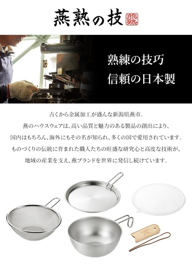 | [ボウル、ザル]18-8ステンレス [蓋トレー]18-0ステンレス [レザーカバー]牛ヌメ革 [シリコン蓋]シリコンゴム |