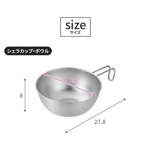| 本体・ハンドルも丈夫なステンレス製で食洗機対応。 ガス火はもちろん、焚き火や炭火に対応します。 袋めんがそのまま入るサイズで、どんぶり代わりにそのまま食べられる。 スープや煮込み料理にも。 抜け止め用ヒモ付きレザーハンドルカバー。 ハンドルが熱くなりがちな、手付きボウル、フライパン16cm〜20cm兼用です。 |