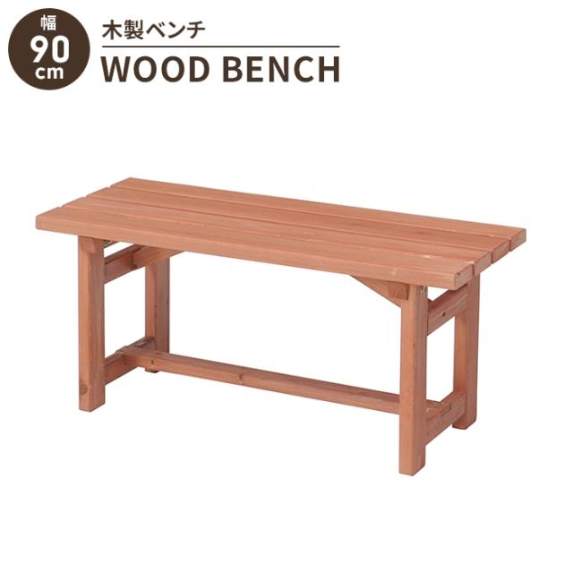 あたたかみのある木製ベンチ 幅90cm。