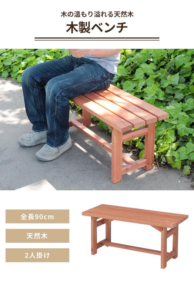 【値下げ】木製 ガーデンベンチ 幅90 屋外ベンチ ベンチチェア 2人掛け 天然木 杉材 コンパクト 木目調 おしゃれ 屋外 庭 ベランダ