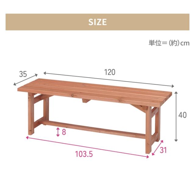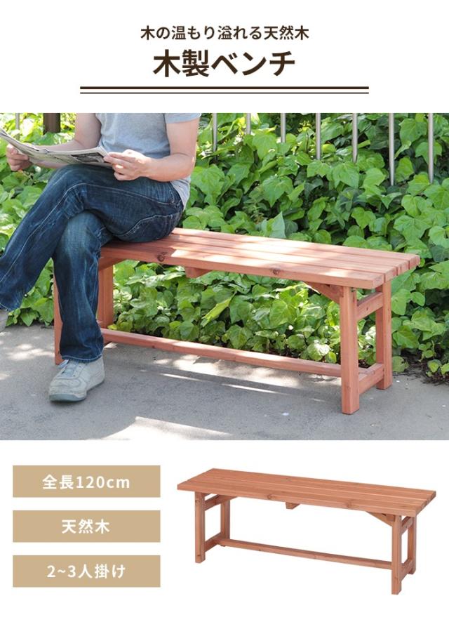 【値下げ】木製 ガーデンベンチ 幅120 屋外ベンチ ベンチチェア 3人掛け 天然木 杉材 コンパクト 木目調 おしゃれ 屋外 庭 ベランダ