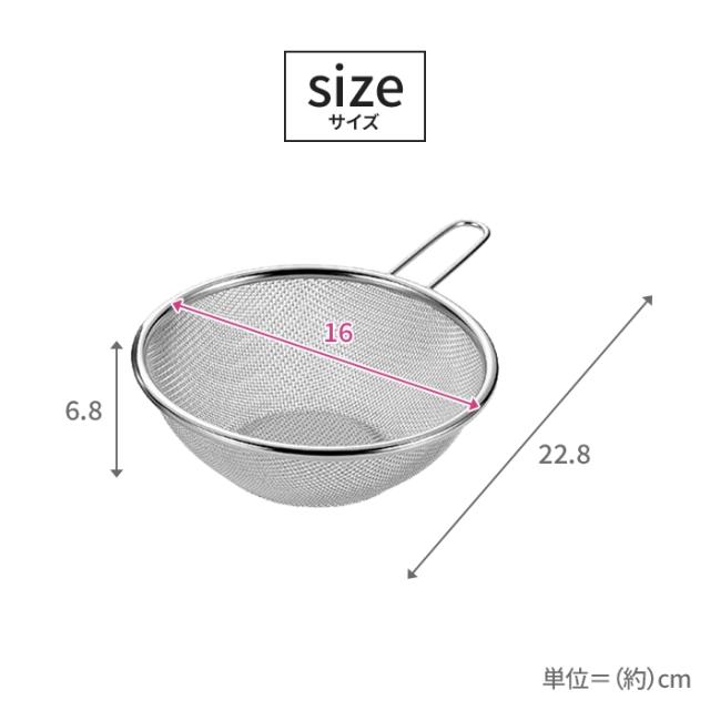 【値下げ】ステンレスメッシュザル 16cm 手付き ザル 丸型 水切り 丈夫 頑丈 キッチン用品 キッチングッズ ボウル 調理器具 便利