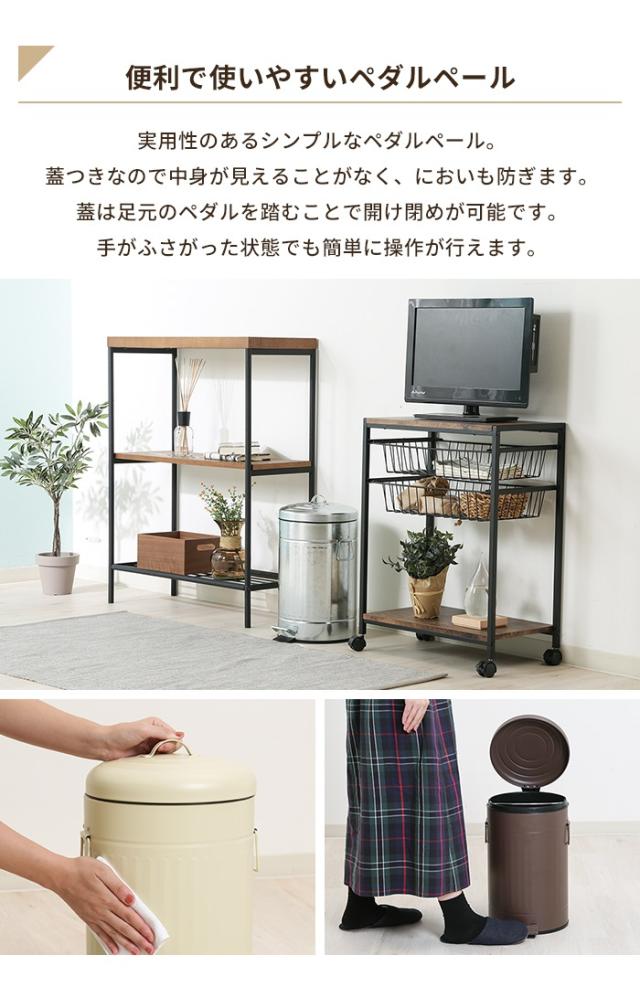 | お部屋に馴染みやすいシンプルなデザインです。 蓋つきなので中身が見えることがなく、においも防ぎます。 蓋は足元のペダルを踏むことで開け閉めが可能です。 手がふさがった状態でも簡単に操作が行えます。 持ち運びに便利な取っ手付きです。 |
