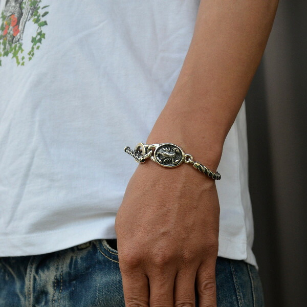スコーピオンをセンターに配したハーフバングルブレス。 アーム部分にはインパラホーンを用いてホールド力をアップ。