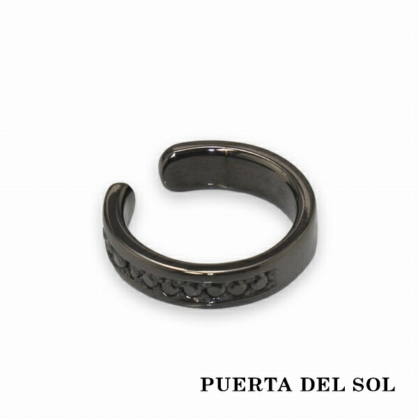 PUERTA DEL SOL フラット ストーン ブラック イヤーカフ ブラック シルバー950 チタンコーティング ユニセックス シルバーアクセサリー 銀 SV950