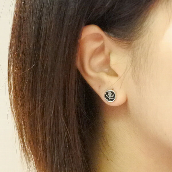 PUERTA DEL SOL ブラックカラー ナイトサークル ピアス ブラック シルバー950 ユニセックス シルバーアクセサリー 銀 SV950 ブリタニアシルバー
