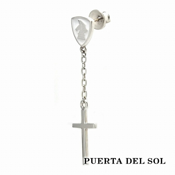 PUERTA DEL SOL Swing Cross Knight チェーン クロス チェスナイトエンブレム ピアス ホワイト シルバー950 ユニセックス シルバーアクセサリー 銀