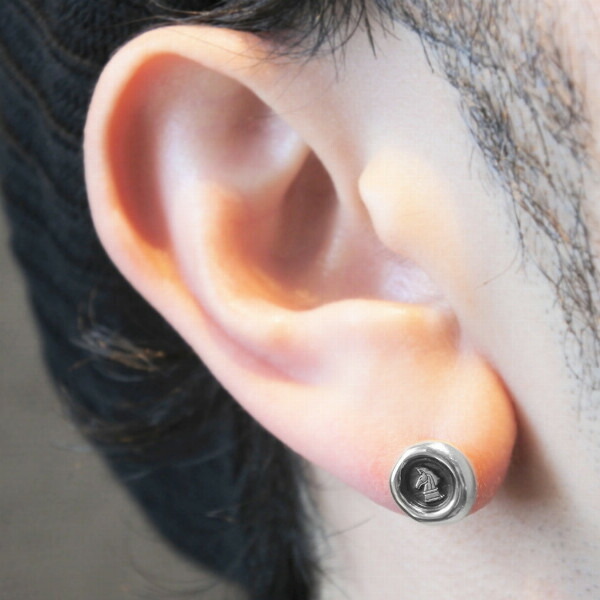 シーリングスタンプをモチーフにしたピアス。細かいディティール、陰影ををリアルに再現したアイテム。