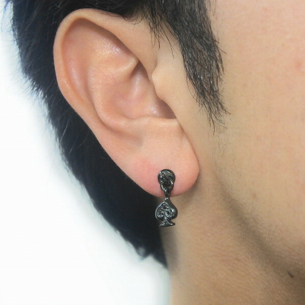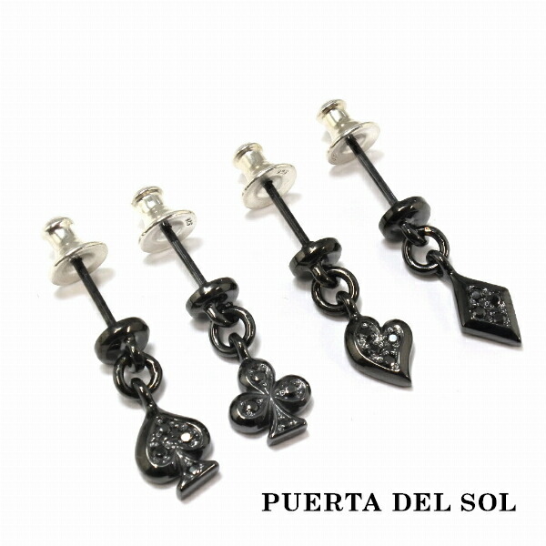 PUERTA DEL SOL トランプ 図柄 ブラック スウィング ピアス ブラック シルバー950 ユニセックス シルバーアクセサリー 銀 SV950 ブリタニアシルバー