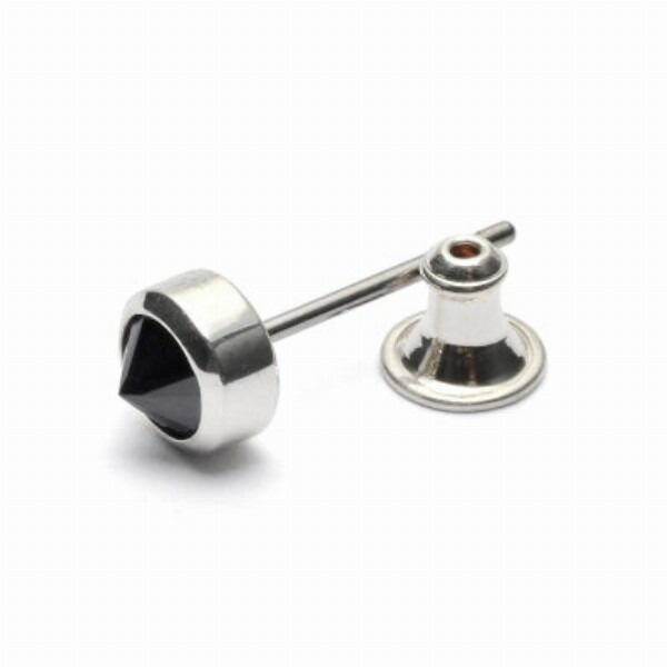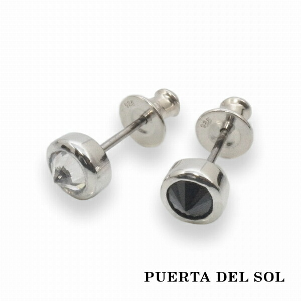 PUERTA DEL SOL 大ぶり ストーン ポイント ピアス ブラックジルコニア シルバー950 ユニセックス シルバーアクセサリー 銀 SV950 ブリタニアシルバー