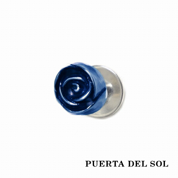 PUERTA DEL SOL 開花 薔薇 小ぶり ピアス ブルー シルバー950 チタンコーティング ユニセックス シルバーアクセサリー 銀 SV950 ブリタニアシルバー