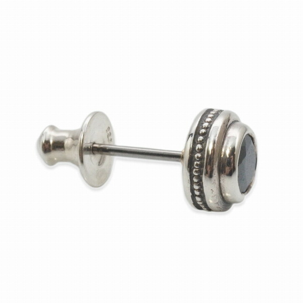 ミルグレインと呼ばれるジュエリーに細かな玉を連続して彫り入れる装飾手法でデザインしたスタッドピアス。そのデザインの通り、ラテン語の「千の粒」が名前の由来です。中央のヘマタイトとスタッズ一粒一粒が輝き、奥行きと味わいのある仕上がりが特徴です。