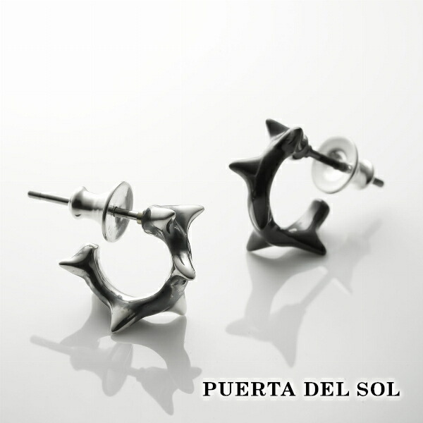 PUERTA DEL SOL イバラモチーフ シンプル ボリューム感 フープ型 ピアス シルバー950 ユニセックス シルバーアクセサリー 銀 SV950