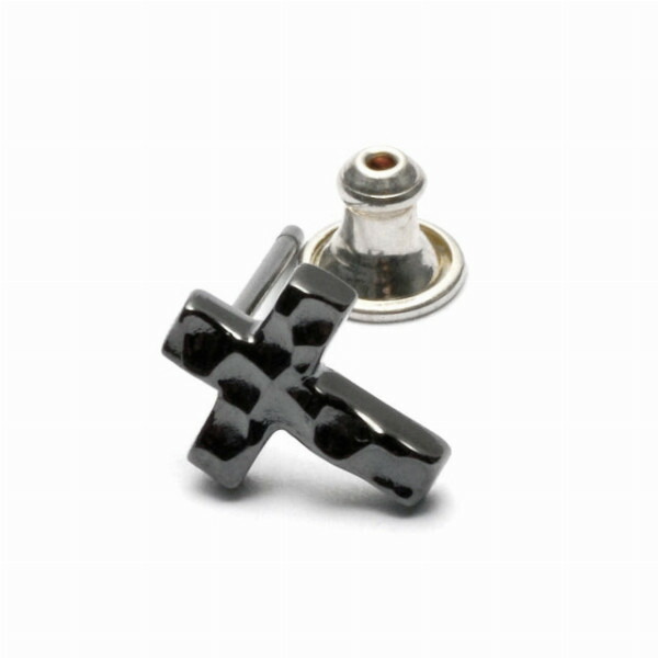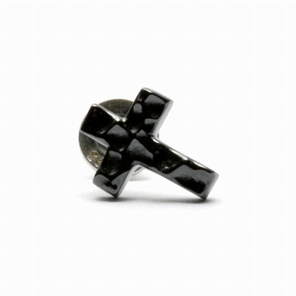 PUERTA DEL SOL ハンマーパターン ソリッド クロス ハンマーパターン ピアス ブラック シルバー950 チタンコーティング ユニセックス