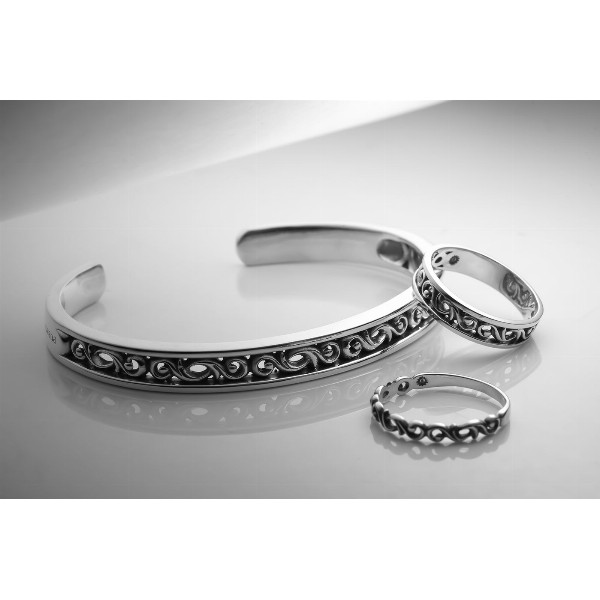 スクロールデザイン(唐草模様)リング。ツルが絡み合い伸びていく様を表した唐草模様には成長や繁栄という意味が込められており、PUERTA DEL SOLらしい繊細な造形美も楽しめるアイテム。