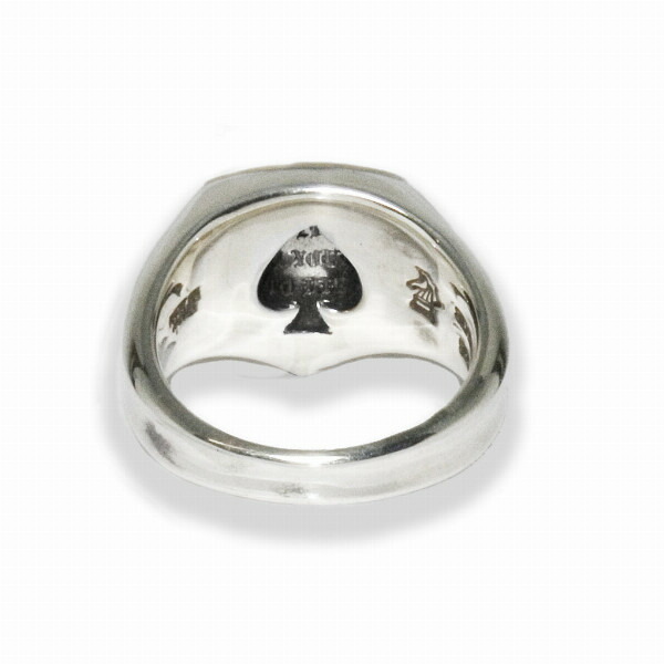 チェスナイトデザインのエンブレムリング。リング裏、スペード型に抜けた窓からはメッセージが見える。メッセージは自分自身に言い聞かせるため、リング裏にデザインするというコンセプト。TOO FAST TO LIVE TOO YOUNG TO DIE(生きるには早すぎ、死ぬのには若すぎる)(人生一度きり 思い切り楽しもう)