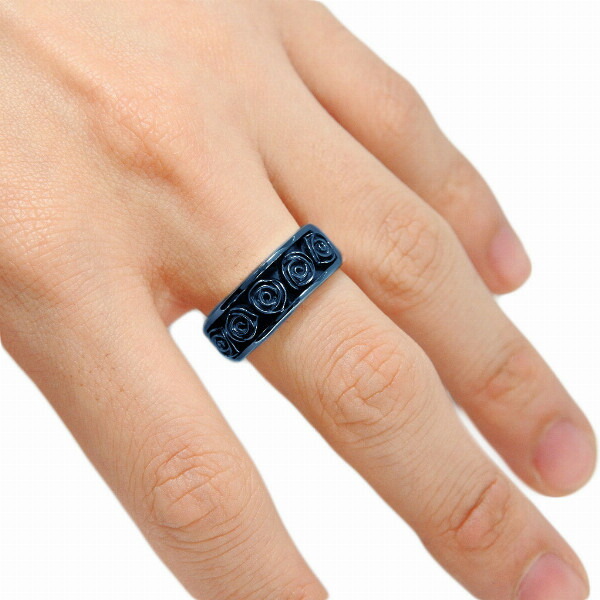 PUERTA DEL SOL Five Rose 花弁 ローズ 薔薇 バラ リング(7号〜23号) ブルー シルバー950 チタンコーティング ユニセックス シルバーアクセサリー 銀