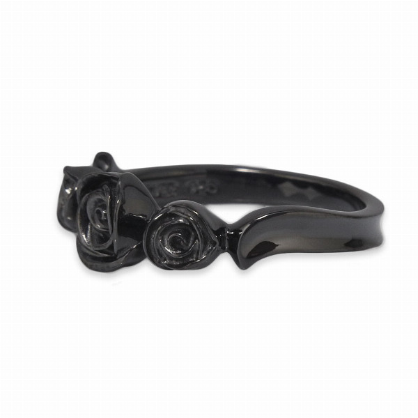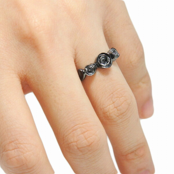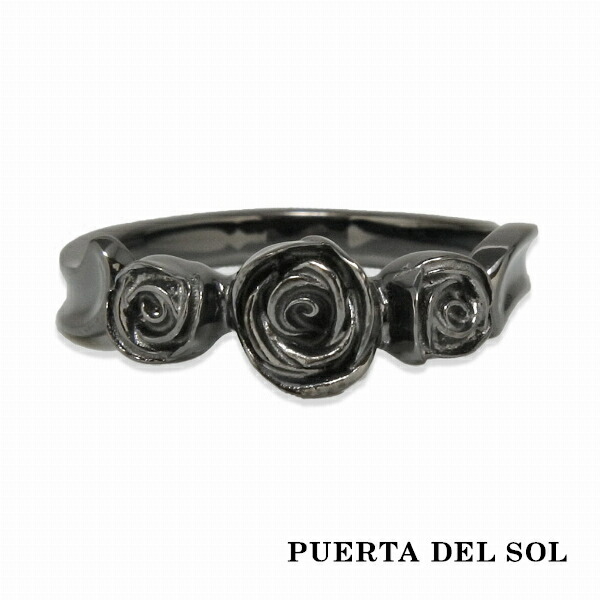 PUERTA DEL SOL Three Rose 花弁 ローズ 薔薇 バラ リング(7号〜23号) ブラック シルバー950 チタンコーティング ユニセックス シルバーアクセサリー