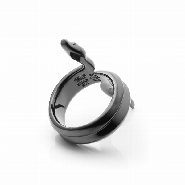 PUERTA DEL SOL 蛇 スネーク リング(7号〜23号) ブラック シルバー950 チタンコーティング ユニセックス シルバーアクセサリー 銀 SV950