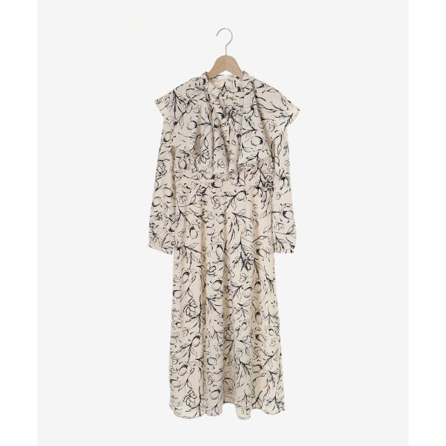 顔周りの大胆なラッフル襟がポイントのワンピース。